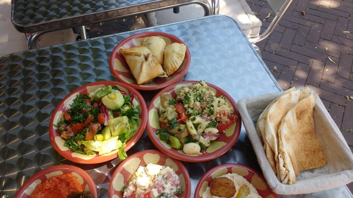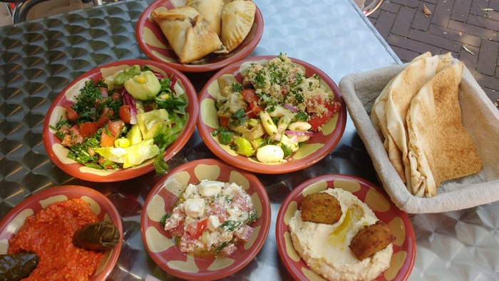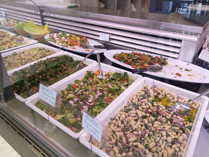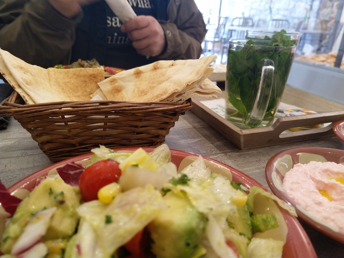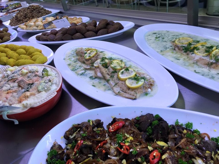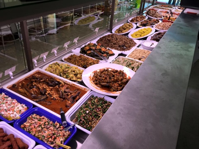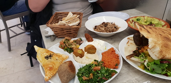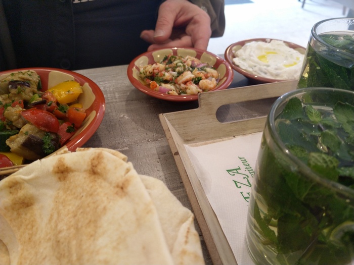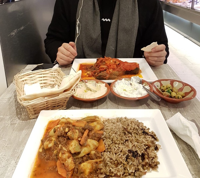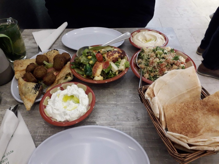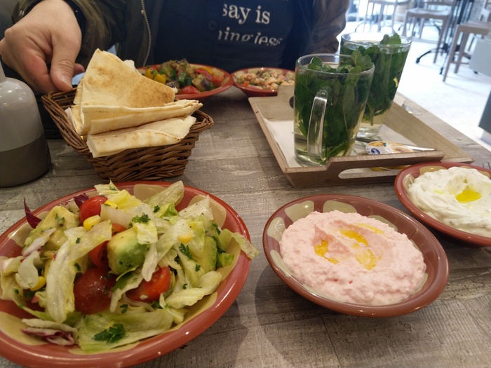 When you enter this wonderful Lebanese restaurant, you will find in front of you a dining table about 10 meters long filled with all kinds of salads, mezze and delicious meals prepared according to traditional Lebanese recipes. You can choose what you want from this table. Among the dishes it offers, you will find: fried fish, sandwiches of various kinds, shish tawook, kofta, hummus, falafel, delicious kibbeh, in addition to baba ghanoush, samosa and many other items. As for the salads, it offers tabbouleh, fattoush, couscous, feta salad and others.