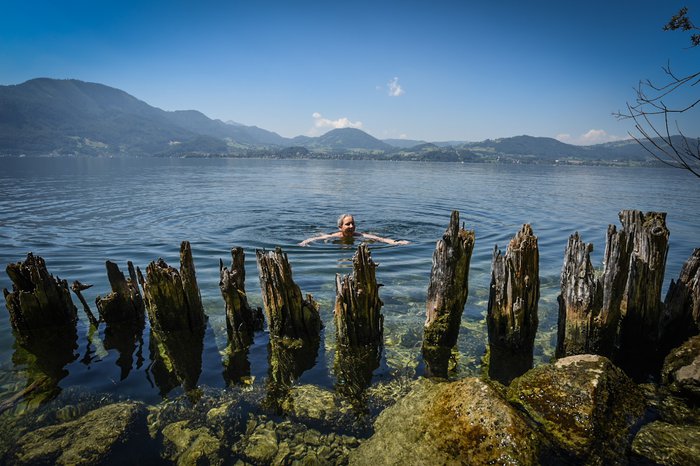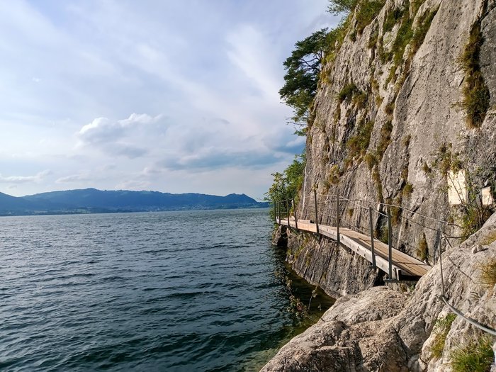 Unterm Stein is a mountain trail in Gmunden near the Traunstein mountain and Lake Traunsee. The area also includes places for climbing, and cars cannot access the area here; There is a small car park and then tourists can continue their way using electric minibuses. The path runs through wooden walkways supported by steel ropes along and across the lake; Which makes it one of the paths with charming panoramic scenes.