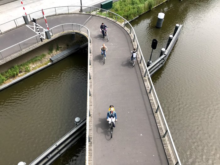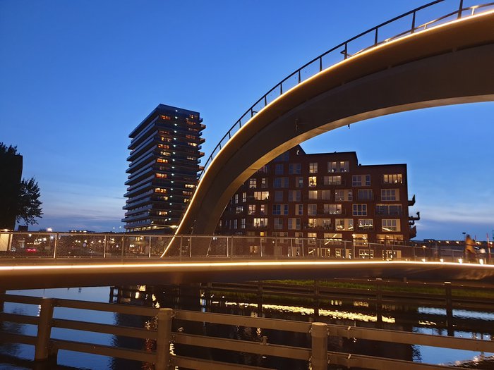 The Milky Way Bridge is an arch and swing bridge in the Burmerend region. It was designed in 2012 as a pedestrian and cyclist bridge. It is an extension of the historical link between Amsterdam and Burmerland, Den Elbe, Landsmeer, Kaduelen and Boekslot which is called the "Milky Way"; Therefore, the bridge was named by this name, and the bridge is considered a tourist attraction due to its sinuous and distinctive engineering design.