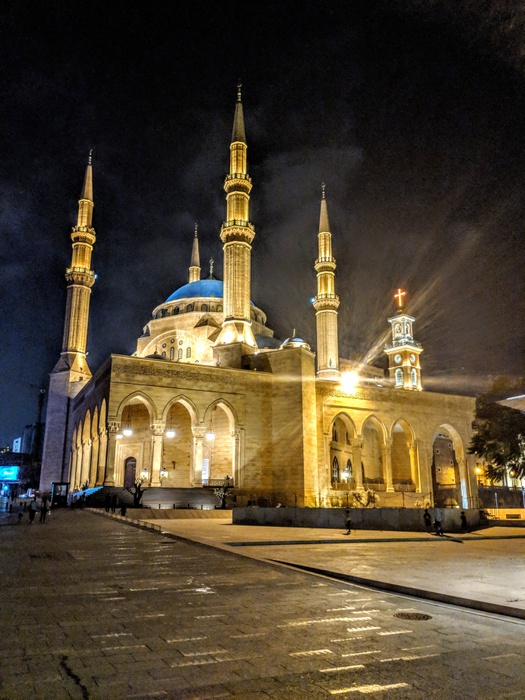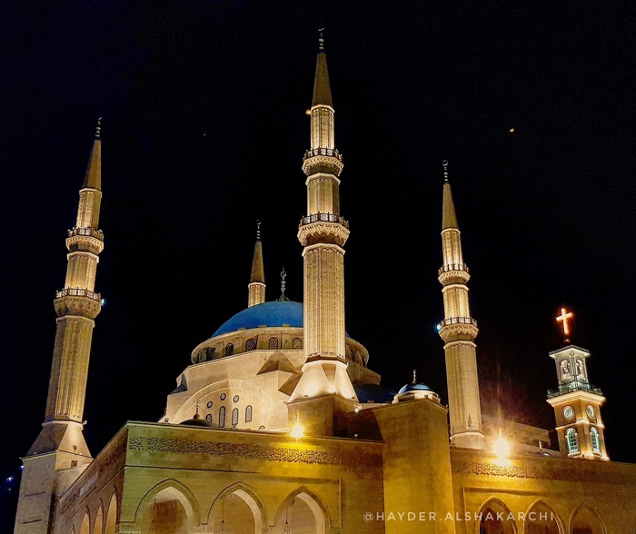 The Mohammed Al-Amin Mosque overlooks the famous Martyrs' Square, and houses the tomb of the famous Lebanese leader, Rafik Hariri. The mosque is famous for its blue domes, its four minarets, and its special architecture, which makes the viewer from any side see it complete and harmonious. It combines in its design the styles of Umayyad, Abbasid, Mamluk and Ottoman architecture, where colors, glass, faience and arches overlap together, making it one of the most distinguished monuments in the country. It's a really cool place, and an ideal destination for taking beautiful souvenir photos.