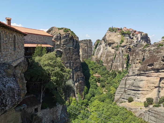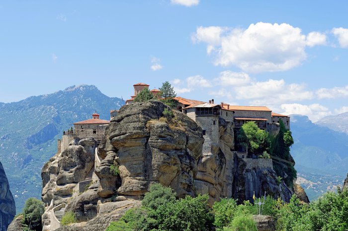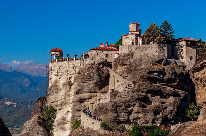 The Holy Barlaam Monastery is the second largest of the famous monasteries in Meteora, and is characterized by the beauty of its stone building, which is built on huge high rocks and surrounded by dense green trees on every side. This monastery attracts tourists because of its religious value, the beauty of its panoramic view, and the modern museum located inside it, which displays rare icons of great beauty, and a number of religious paintings, most of which date back to the European Renaissance, in addition to the old clothes worn by monks in the Byzantine period.