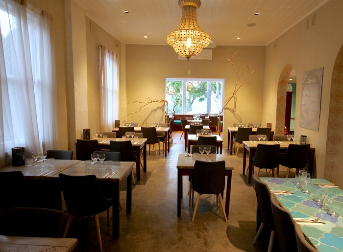 wonderful Moroccan restaurant in Sydney, with updated traditional decor, in which you see Moroccan motifs everywhere. The restaurant also serves delicious food with Moroccan dishes, with beautiful ornate colors, in addition to the decor with happy colors, the service is wonderful, and the quantities of food are large, for its price. The menu includes appetizers such as Moroccan harissa butter with bread, oysters with lemon sauce, Tunisian brika dish, main dishes such as couscous with eggplant and tahini, parmendi dish, grilled salmon, side dishes such as broccoli, a wide variety of creative salads, and desserts, including pistachio baklava. Halabi, and many others.