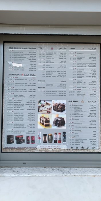 There are a variety of hot and cold drinks that customers can order from the Moroccan Taste Café, located near Corniche Street in Jeddah, where they can get the finest types of coffee, including Arabic, American and Turkish, in addition to regular tea, green tea or Moroccan tea, and the restaurant offers a variety Among the delicious pastries, including donuts, cakes and croissants, which can be eaten inside the restaurant or as take-out orders.