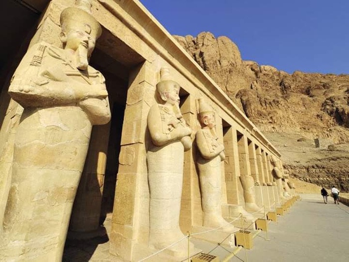 The Temple of Hatshepsut, also called the "Holy of Holies," is located in the dramatic bay at the foot of the plateau on the west bank of the Nile. The architectural design of this mortuary temple is what gives it its charming character, and this place was a sanctuary dedicated to the woman who ruled ancient Egypt for the longest period (Queen Hatshepsut). The inner rooms were cut out of the rock, an elaborate architectural depiction of the gods of the Pharaonic civilization, and were decorated with statues, sphinxes, and inscriptions that were meticulously restored over time. And many tourists visit it from all over the world to learn about the wonderful Pharaonic civilization. Do not hesitate and visit it with your family and friends and learn about this wonderful historical site!