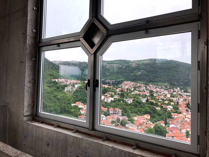 The Peace Bell Tower Mostar has a modern design and is located next to a beautiful Franciscan church in the city of Mostar. It is a special tourist destination, as it offers a wonderful panoramic view over the entire city and the surrounding hills, as its gazebo is 75 meters high. And don't hesitate when visiting by hearing the story of Mostar's dramatic history from the guides available.