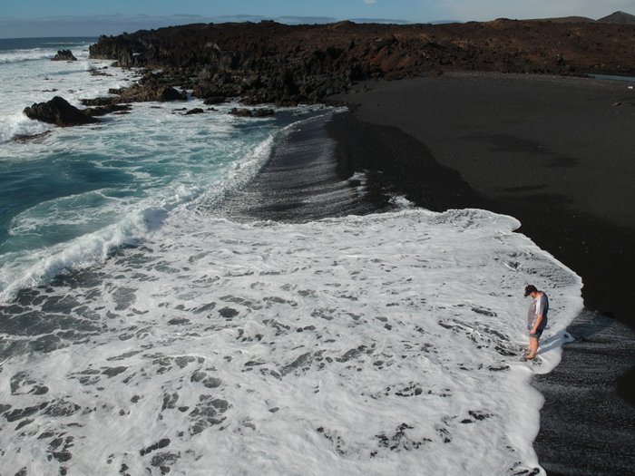 Mount Bermeja Beach is a beautiful beach with black sand and emerald water, and it is characterized by its amazing views, where you see the volcanic mountain as it is still burning, and it is located in Lanzarte near Charco de los Quiclos, and it is wonderful to walk beside it and watch the crashing waves, and this rich nature makes it the ideal place to capture Great pictures.