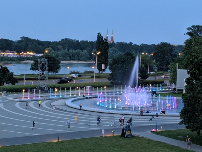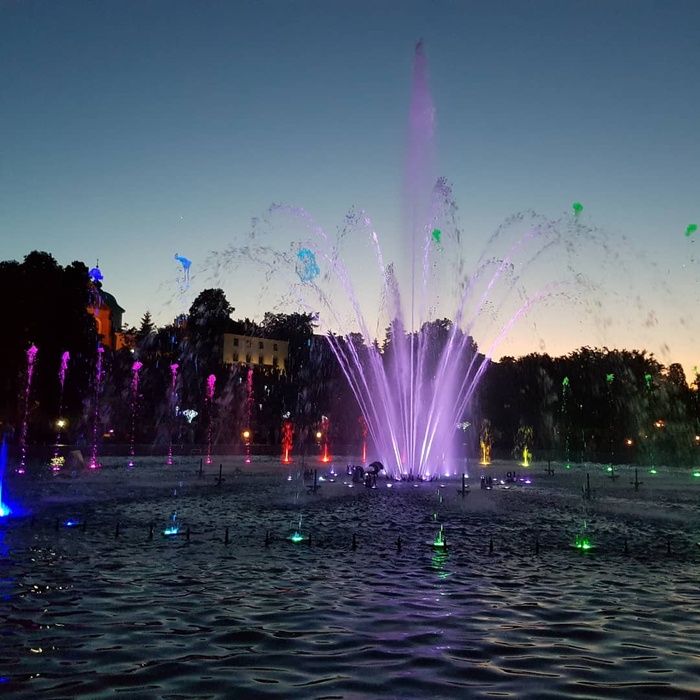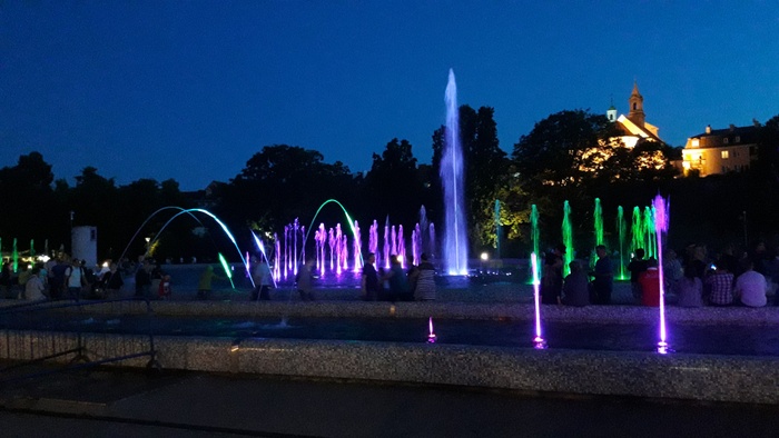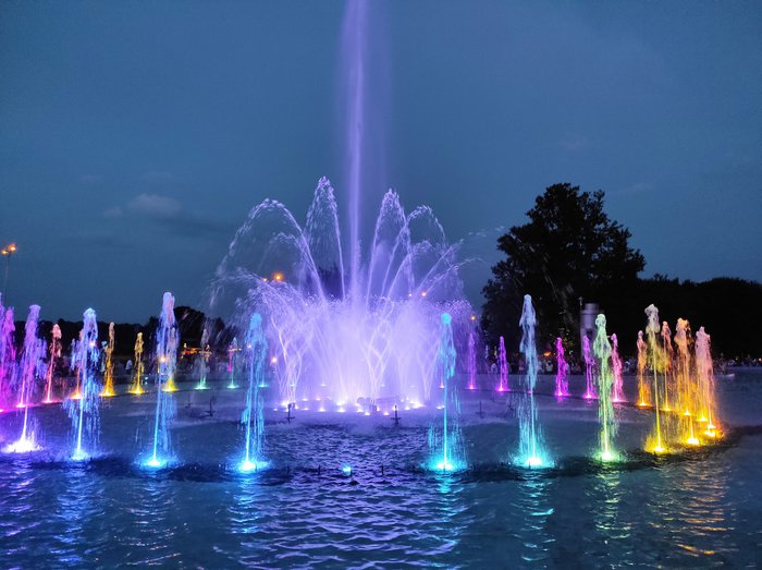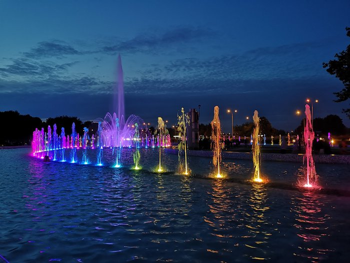 Warsaw Fountain Park started operating in May last year (2018) but since then it has become one of the best attractions in Warsaw for both locals and tourists. The garden is a group of four fountains located in the square of the First Armored Division of the Polish Army. The show lasts for 30 minutes, where the water is colored in different colors by LED lights and lasers, and its movements are in harmony with the music that overlaps with the sound of the water to give a beautiful and enjoyable show.