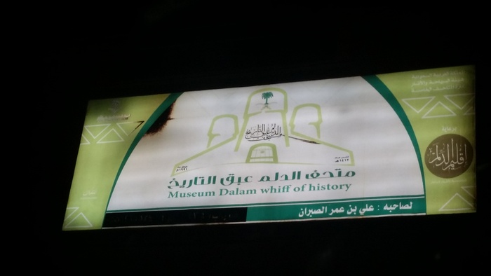 Al-Dilam Museum, the fragrance of history, is one of the museums of the Riyadh region in Al-Kharj Governorate, the Al-Dalam Center. It was founded by Ali bin Omar Al-Sabran. The museum is located in a rented building of one floor and includes a number of heritage pieces that were presented in five wings. Agricultural and leather goods, old doors, lighting tools, scales and measures, clothes and woolen coffee ware. The launch of the museum is considered to be in 1412 AH, as it had its beginnings in his house and its small area, and it consisted of some old legacies, pictures and books, after that he moved to this site in 1432 AH.