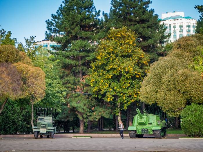 The Museum of Military Equipment “Victory Weapons” is located in Krasnodar Park, and displays about 40 units of heavy military equipment dating back to World War II, such as tanks, cannons, bulletproof installations, the 1955 submarine launched in Leningrad (St. Petersburg), armored personnel carriers, And a monument to the heroes of the Soviet Union who liberated Kuban and Krasnodar during the war. The museum hall also presents exhibits from the Great Patriotic War, including military uniforms, children's toys, kitchen utensils, button accordion, first aid kit, small arms, military documents, medals and awards, and photographs. Photographs of the war years, and others.