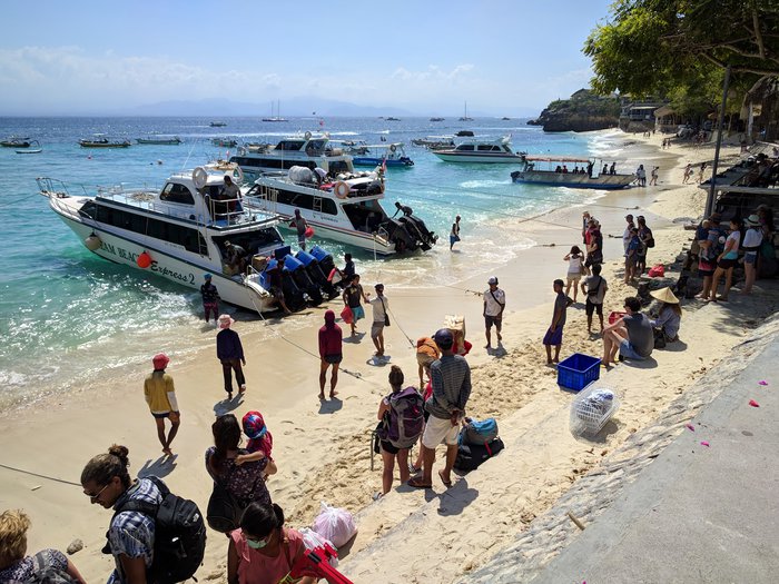 Famous for its attractive fishing boats that give it a rustic setting, Mushroom Bay Beach has beautiful beach cottages and villas overlooking the cliff of Nusa Lembongan, and is a popular cliff diving site, just a short walk from Tamarind Beach, famous for its blue waters Net and excellent facilities and services.
