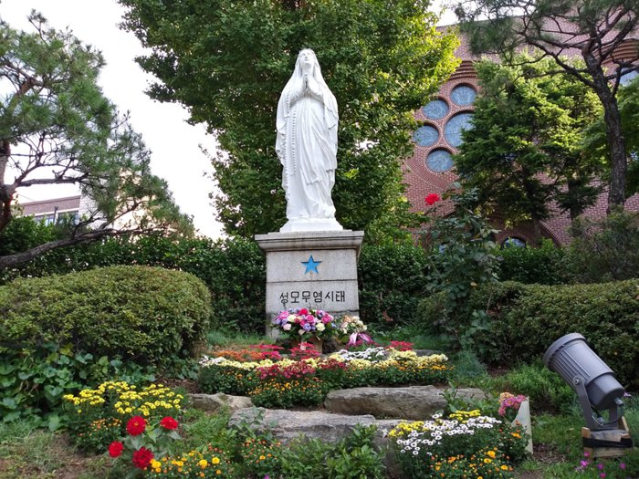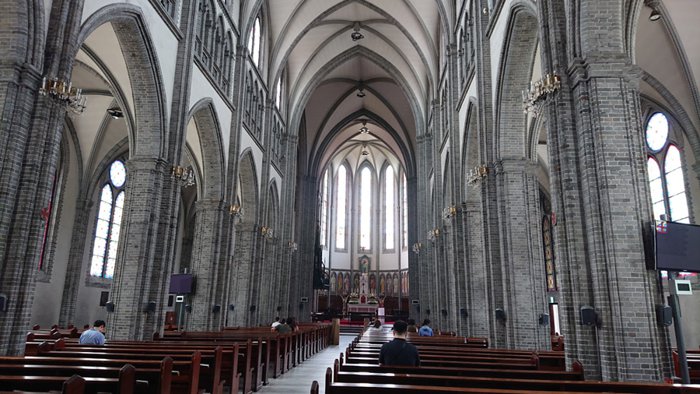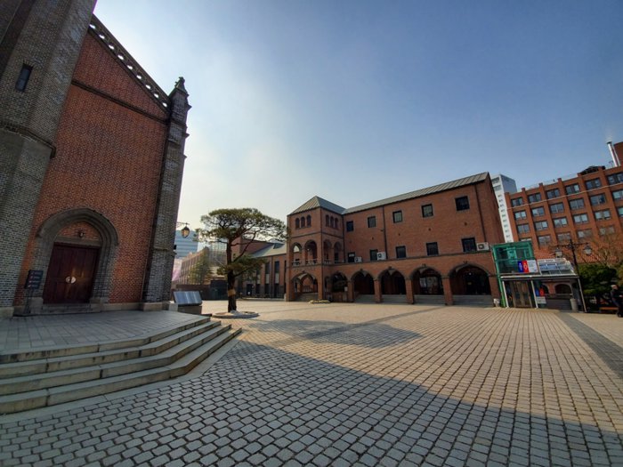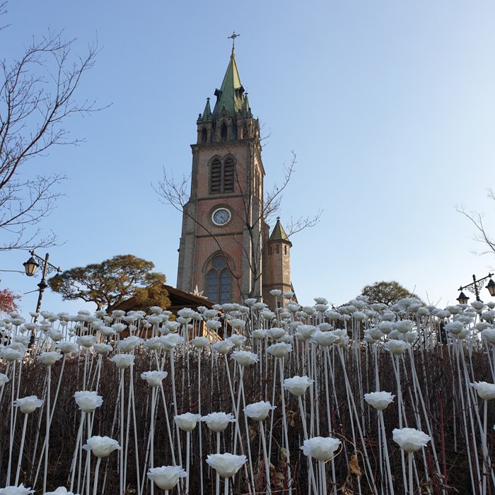 Myeongdong Cathedral is the first Catholic parish church in Korea and the first Gothic building built in it. It has been designated as an Important Historical Site of the country. The construction of the cathedral began in 1892 and was completed in 1898. Unlike most Gothic buildings, Myeongdong Cathedral was built with bricks rather than stones. The magnificent high ceilings and the arches between the interior columns show the stunningly beautiful Gothic style, and the church vault contains the remains of nine saints and martyrs who devoted their lives to spreading Catholicism in Korea.