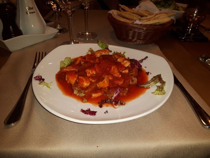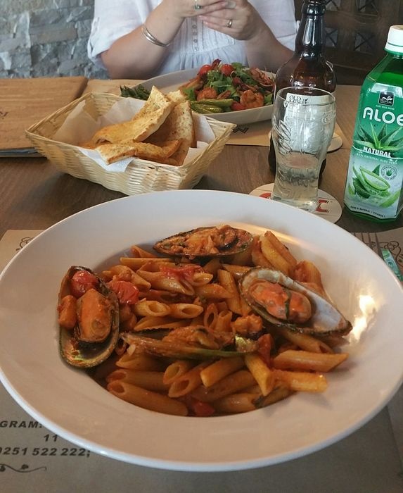 Mythos Restaurant is an elegant restaurant that is ideal for a family dinner, festive events or business meetings. It has a spacious area decorated in a rustic style and is ideal for spending some private moments in an intimate atmosphere. There is a designated smoking area and one for non-smokers. The restaurant also includes a spacious and green summer garden It is suitable for eating delicious food in the open air, and it provides a varied menu between Mediterranean, Greek and European cuisines, the most famous of which is saltimboca, which is a dish consisting of pieces of veal or wrapped poultry seasoned with herbs that impart irresistible flavors.