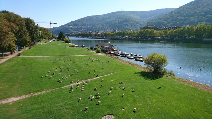 Necker River Park is a green stretch of about one kilometer long along the northern bank of the river. It is a stunning park that tourists and locals alike come to enjoy the panoramic views of the river, Heidelberg Castle, and the Old Bridge. The park provides many facilities, including children's play areas, many grills for people who want to barbecue, volleyball courts, and others.