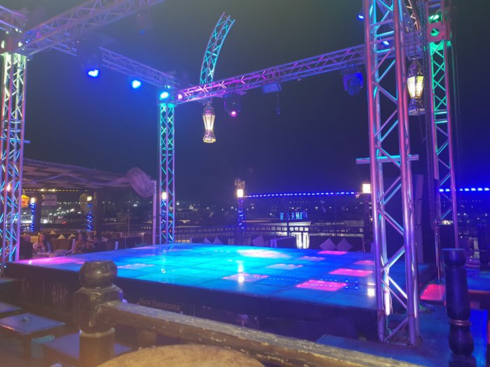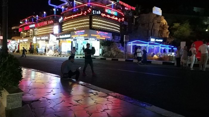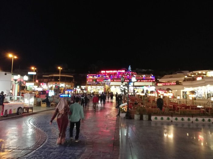New Panorama Sharm combines entertainment and comfortable sessions with a beautiful view of the city, where the seats are distributed in the inner hall and the outer square, in which there is also a large platform for belly dancing shows and entertainment, lit in vibrant and bright colors, and the menu includes many dishes that suit different breakfast meals And lunch and dinner, including seafood soup, grilled shrimp with vegetables, pasta, grape leaves and hummus with salads, chicken breast with french fries.