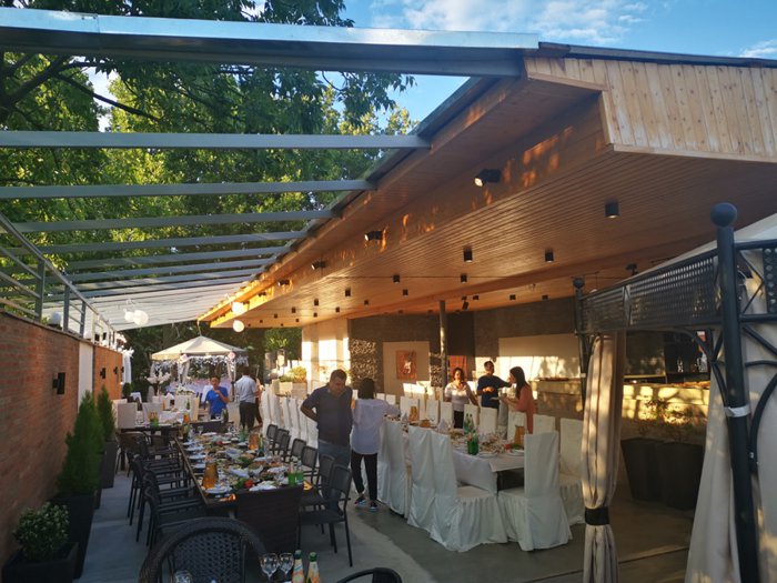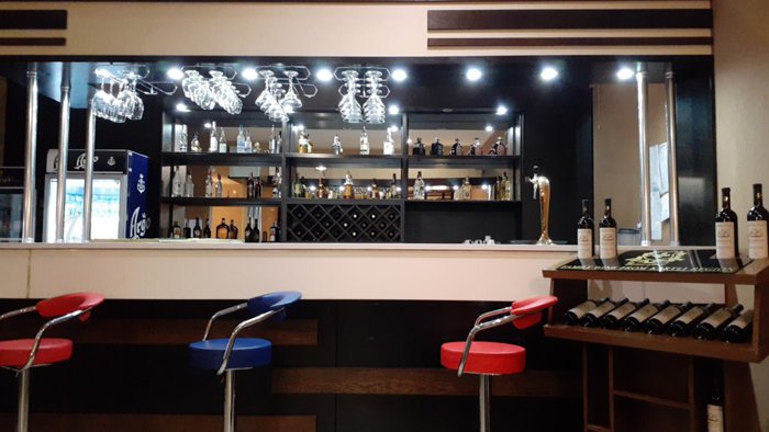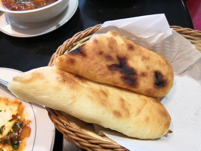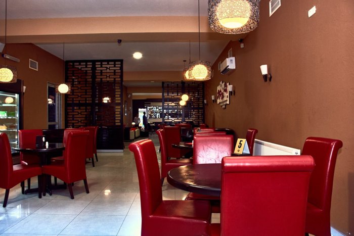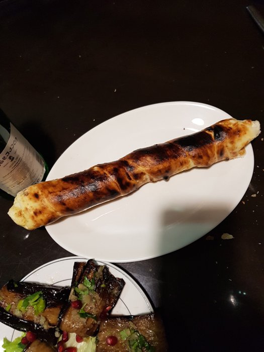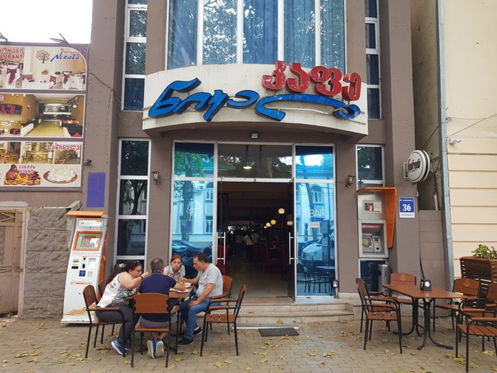 Grilled chicken nuggets, shekhartma chicken dish, mushroom soup with carrots and potatoes, egg pancakes with butter, grilled minced meat and vegetables, Georgian cheese khachapuri are a group of dishes included in the traditional menu at Nikala Restaurant, which people enjoy eating on indoor seating. Leather, red and black, within the relaxed atmosphere.