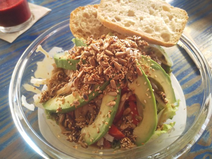 Noah's Ark Restaurant is a great place for breakfast, and it offers many vegetarian options such as vegetarian tapas with baked avocado with feta cheese and local goat cheese with palm honey, in addition to preparing various types of sweets, homemade cakes, fresh juices and coffee, and it prepares all its dishes Using fresh local products and serving fresh bread that he bakes himself.