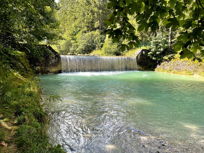 The Obernach Canal waterfall is located 2.5 km from Bavaria and can be reached without much effort, as you can walk for about half an hour, and it only takes a few minutes by car, and there is a small parking lot opposite the waterfall. It is a natural waterfall with a unique formation with ever-flowing stagnant waters and a smooth rocky background. The waterfall pours its waters into a running river whose banks are surrounded by green natural areas.