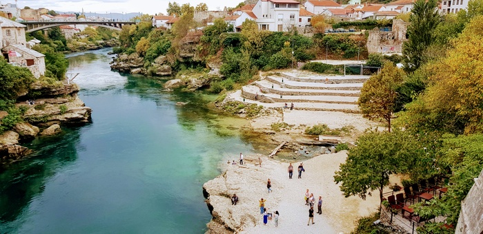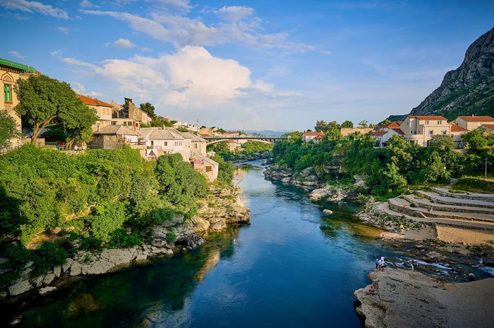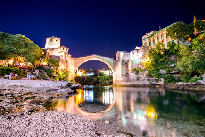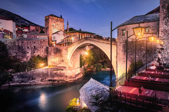 The Old Mostar Bridge, or Stari Most, is one of the main attractions in the city of Mostar, because it is a historical bridge dating back to the period of Ottoman rule in the country. The bridge connects the two banks of the Neritava River, and rises from the water by approximately 24 meters. Visitors go to the bridge to take pictures, jump into the water, or even hold weddings. It is one of the sites on the UNESCO World Heritage List, so do not miss the opportunity to visit it!