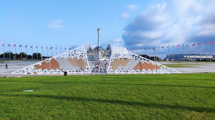 The Sochi Olympic Park is located in the Sirius urban area in the Imeretinsky Valley on the Black Sea coast in the city of Sochi. The park includes the main stadium used in the Olympic Games celebrations, in addition to many spaces for indoor sports such as hockey and ice skating. The stadiums are located around a water basin containing A distinctive and eye-catching fountain.