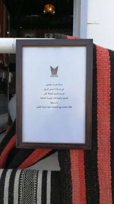 The Omani Heritage Gallery is a non-profit organization that seeks to promote Omani artisans and their products and provide them with an outlet for their artwork. It works with local artisans from the Musandam Peninsula to the southern governorate of Dhofar, and displays baskets, weaving, pottery, silver, copper, home furnishings, frankincense and gifts. This exhibition is located in the Jawharat Al Shati complex In front of the Muscat Intercontinental Hotel and a 15-minute walk along the paved road from the Grand Hyatt Hotel.