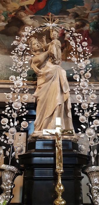 The current museum is located in the old infirmary and displays the eclectic collection by the nuns over the centuries. The oldest pieces date back to the 14th century. Many praises and distinctions have been attributed to the white limestone statue of Our Lady of Pottery in the Baroque church. The museum contains stained glass windows, and tapestries. The Wall and the Miracle Book, a 13th-century statue is one of the oldest preserved statues in Bruges.