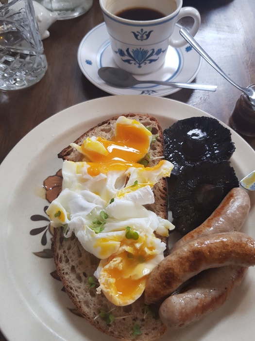 simple and elegant cafe that offers a range of delicious snacks, such as toast sandwiches with a set of ingredients that you can choose from, such as turkey toast, toast with an omelet served with grilled potatoes and sausage, and smoked salmon toast. Chicken fingers are also served with salads and delicious sauce. In addition to this, the menu includes a group of desserts such as carrot cake, toast with cranberry sauce and other desserts that are served with hot and delicious drinks.