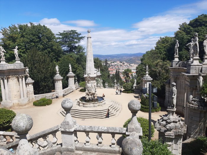 The Church of Our Lady of Remedies was built on top of Mount St. Stephen in Lamego between the 18th and 20th centuries, and is visited by pilgrims from all over the country, especially on September 8; On the day of the birth of the Virgin Mary, the huge 686-step Baroque staircase that gives access to the church is divided into several levels interspersed with distinctive sculptural elements, such as statues of kings, eight fountains, etc. The church is characterized by interior designs in the stunning Rocaille style.
