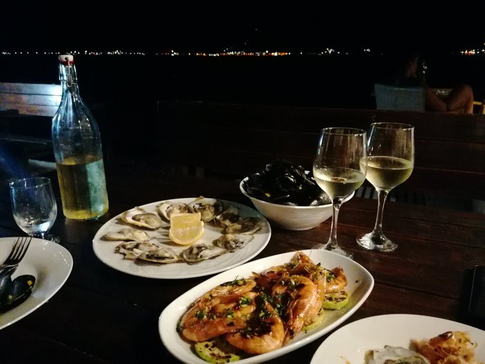 Oysters Muscles Restaurant serves many dishes and European cuisine such as grilled steaks and pasta, but it mainly specializes in seafood such as fish, shellfish and prawns, in addition to appetizers and fresh salads.