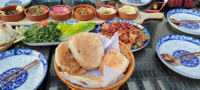 You can try the most famous Arab and Palestinian dishes at the Palestine Nights Restaurant, including pastries and salads, in addition to a group of traditional main dishes such as Maftoul, Mansaf, Qidra, and others. You can also try the most famous Palestinian sweets.