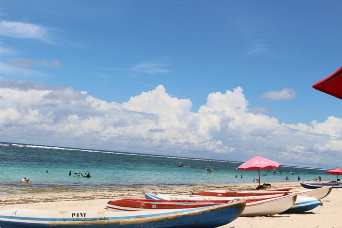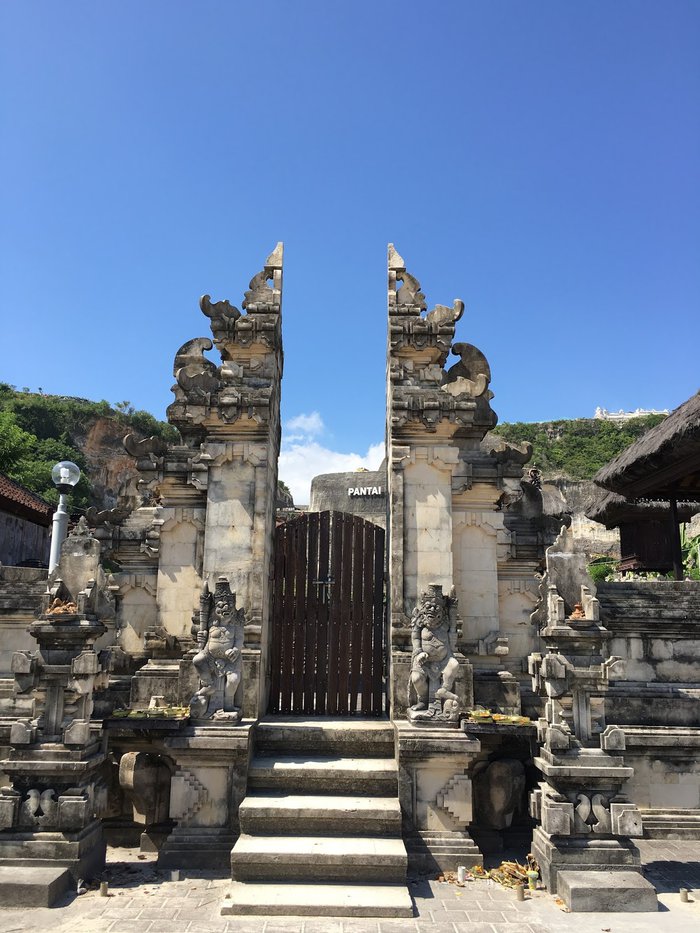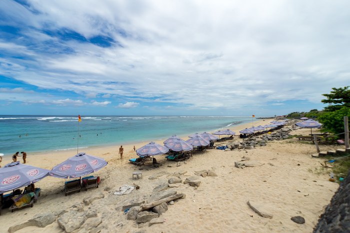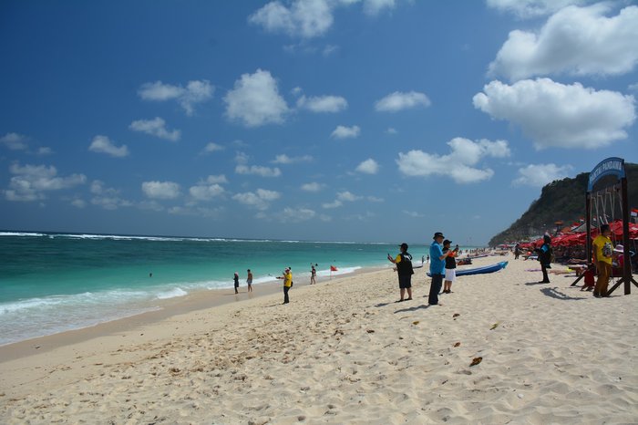 Set secluded behind massive limestone cliffs on the Bukit Peninsula, the one kilometer-long Pandawa Beach boasts impressive terrain, stunning man-made stone carvings, and its waters are an eerie mix of blue and green due to the seaweed growing along these coasts. It is an ideal place for swimming, kayaking and windsurfing.