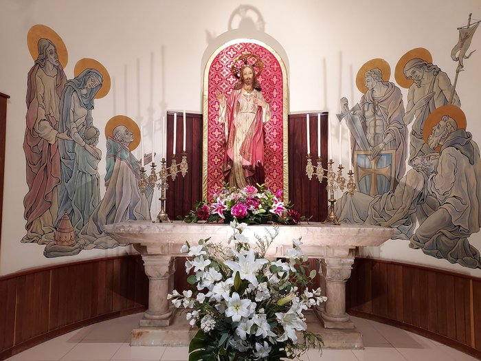 The parish of San Antonio de Padua is located next to the great shrine erected in memory of the Italian legionnaires who perished during the Spanish Civil War. Both the shrine and the church, and the facades of the church were built of exposed brick with a stone base, and are also distinguished by many features of traditional Aragonese architecture.