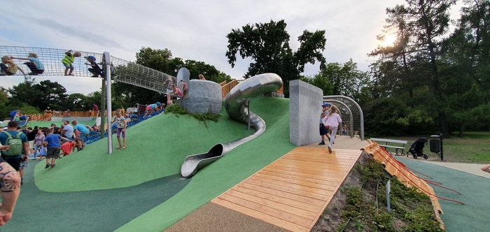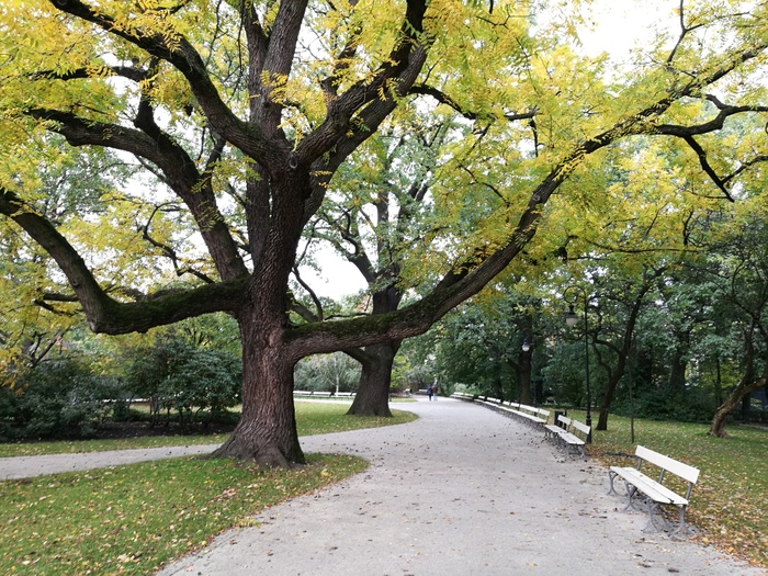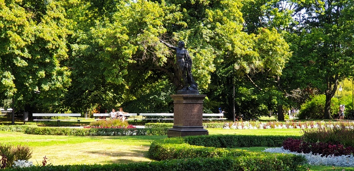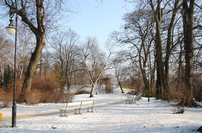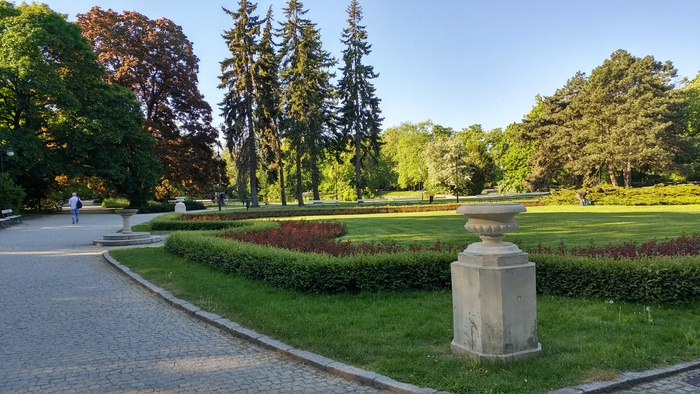 The park is considered one of the most favorite parks in Warsaw, it is very beautiful and not crowded like the rest of the parks. The park has a size that is not very big but it contains a small lake with a lot of birds, mainly pigeons, and there is also a nice little bridge and a fountain with drinking water. It is also teeming with various kinds of trees and shrubs such as oak and perennial plants such as the impressive English oak, black walnut and maple. There are plenty of benches to sit, read books and relax.