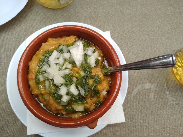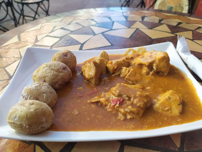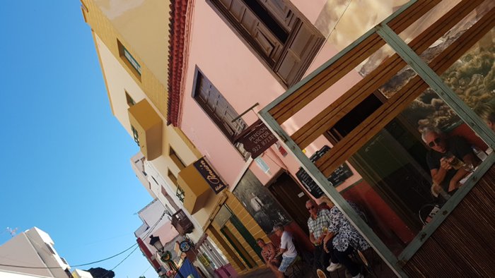 Pension Victor is a local Canarian restaurant located in San Sebastian de la Gomera. It has a patio with street seating, and has a modest menu that includes many dishes such as soup de perros, almogrotte, a spicy pie of soft cheese, peppers, tomatoes, and grilled cheese. , curly potatoes, and tuna with mojo sauce, in addition to two vegetarian dishes such as moussaka and vegetable couscous salad.