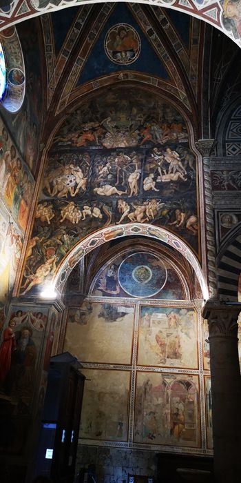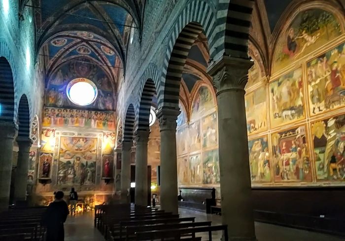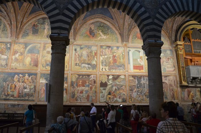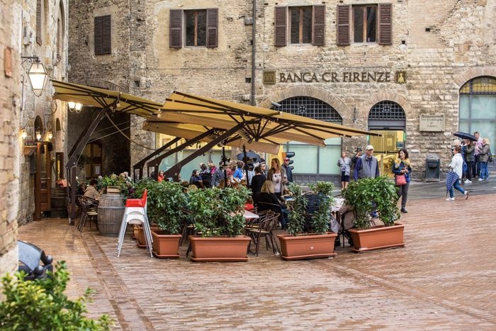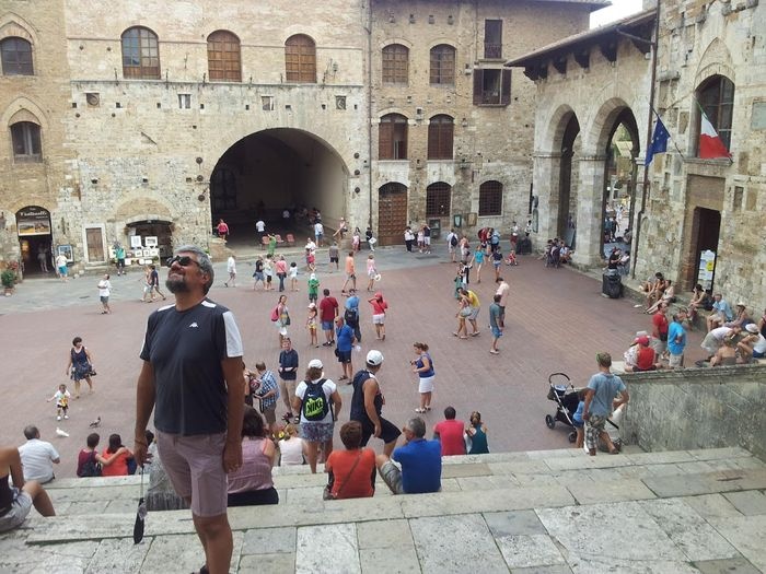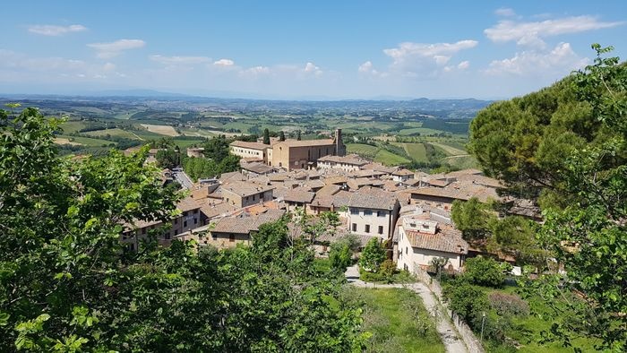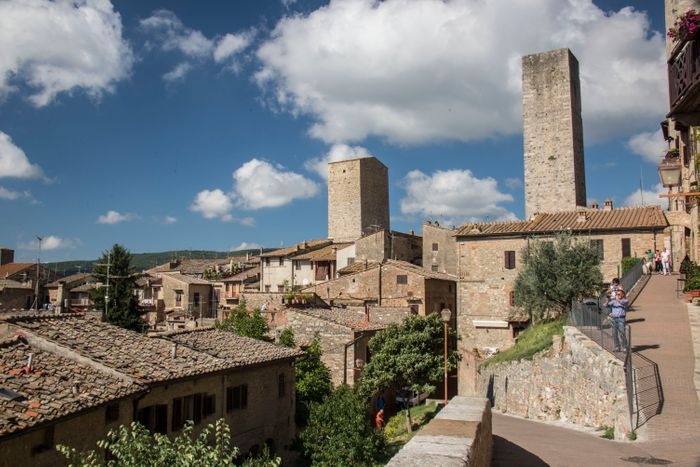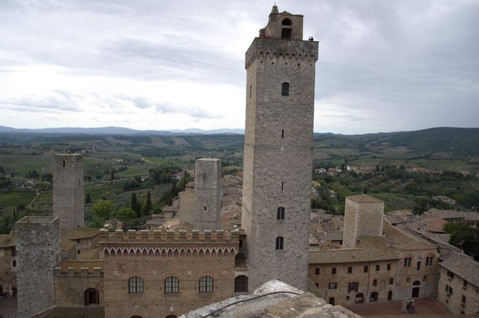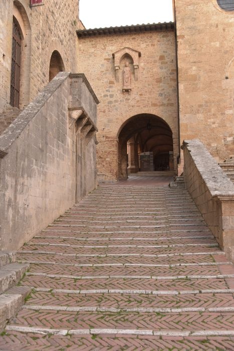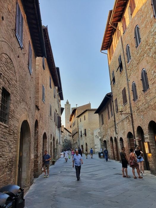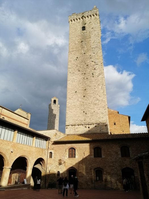 Piazza del Duomo is the heart of San Gimignano, and was the center of political and religious life in the Middle Ages, marking the junction between the Via Francigena (which runs from north to south) and the ancient Via Pisa Siena (which runs from east to west). It is a square paved with red bricks in the shape of a trapezoid, lined with a group of ancient buildings, including the Roman Church of Santa Maria Assunta, the Palazzo del Popolo, the Grosso Tower and many others. There is also a range of local shops, cafes and restaurants scattered around the square.
