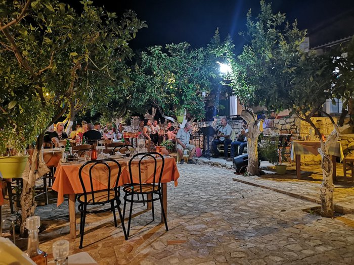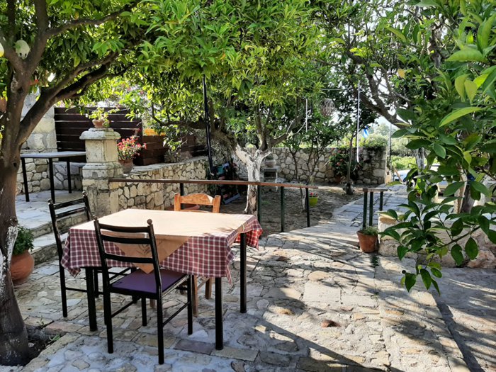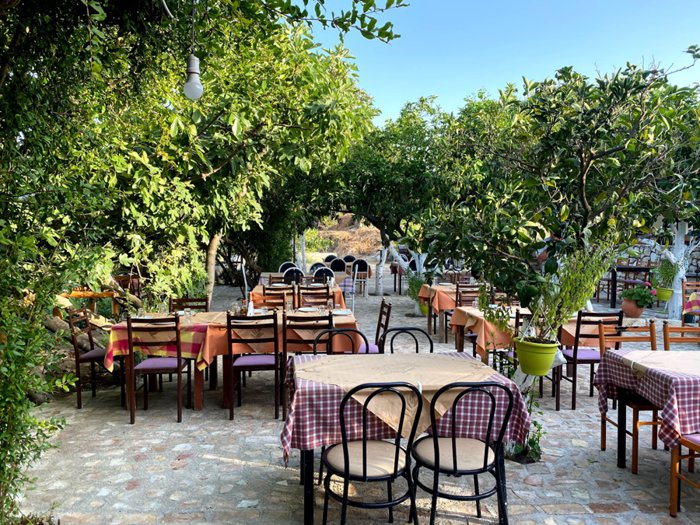 Peronaki restaurant customers feel double pleasure when dining in the restaurant's outdoor garden full of brightly colored flower trees, where the shade of these trees and other perennial trees allows the possibility of sitting in the garden at different times of the day. The majority of customers prefer to eat seafood, chicken or grilled meat served with fried potatoes and delicious local sauces accompanied by family and friends.