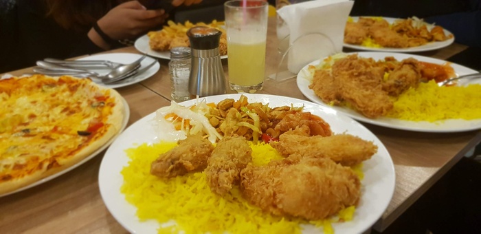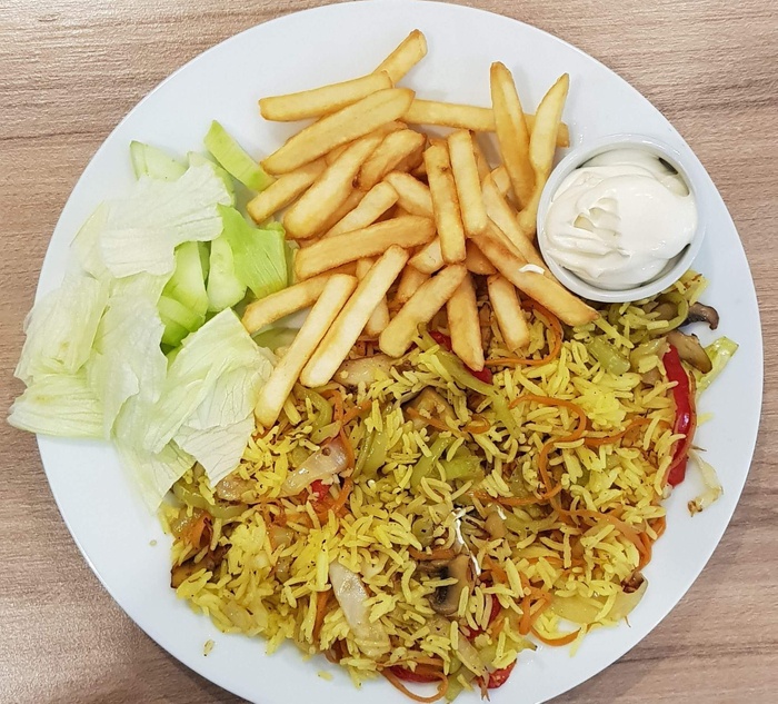 wonderful restaurant in the heart of Tbilisi, and this restaurant is distinguished from other restaurants in the city by the fact that its menu will be liked by everyone, as there are many delicious dishes from different international cuisines, such as Italian cuisine, Arabic cuisine, and many dishes of Mediterranean countries. This restaurant also features that all dishes it serves are halal. Among the dishes, you can find pizza, shawarma, kebab, sayadiyah (rice with fish), biryani, ouzi with chicken pieces and yogurt, shish tawook, Egyptian koshari, curry, chicken liver with rice, and falafel. And many types of soups and desserts.