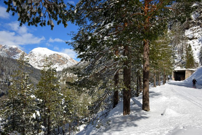 The railway over Filizon was built by the Italian and Austrian military authorities in World War I, with a length of 300 meters to help deliver goods and supplies to the soldiers camped on the border. Now, the railway track is used as an excellent dirt track for cycling in the summer and skiing in the winter. Wanderers on the tracks watching the old stations, which are still in good condition.