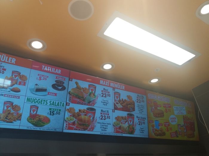 The restaurant provides a group of family and individual meals of fried chicken pieces, where the number of pieces, toppings and side dishes included with the meal is determined by the customer, and individual meals consist of two or three pieces of chicken with fried potatoes, and family meals consist of 8-20 pieces and are served with A side dish, a cold drink, and biscuits. There are also many sandwich options such as chicken wrap and tender chicken. It is worth noting that this branch is located inside West Park Shopping Center.