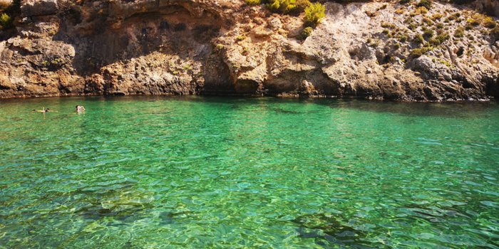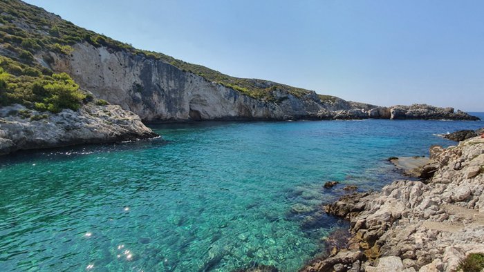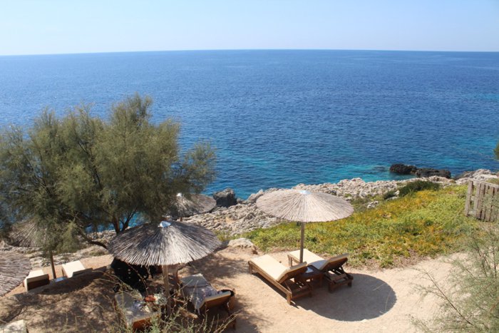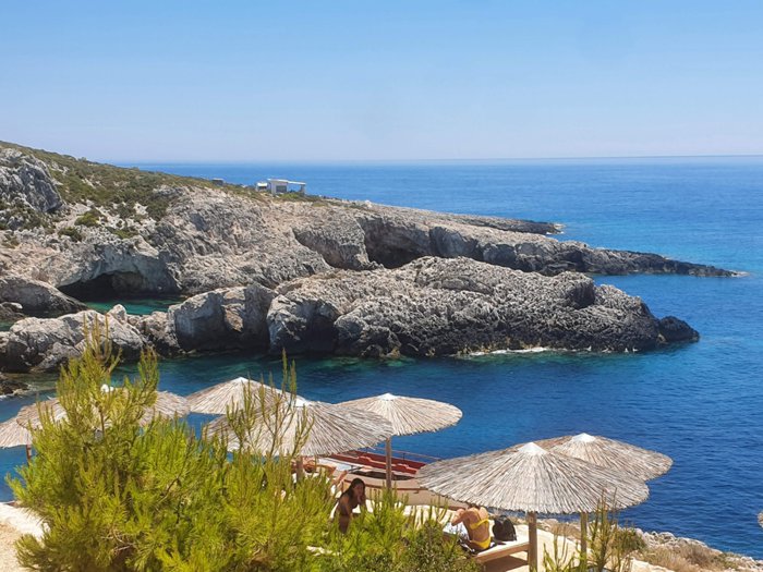 Porto Limnionas Restaurant's customers sit in its outdoor patio overlooking the enchanting sea and rocky cliffs dotted with green perennial trees while the chef prepares for them different types of seafood and delicious recipes from the local Greek cuisine. The restaurant also offers a wide range of salads, appetizers, side dishes and sauces rich in flavors of wild herbs suitable to accompany grilled meat and fish dishes.