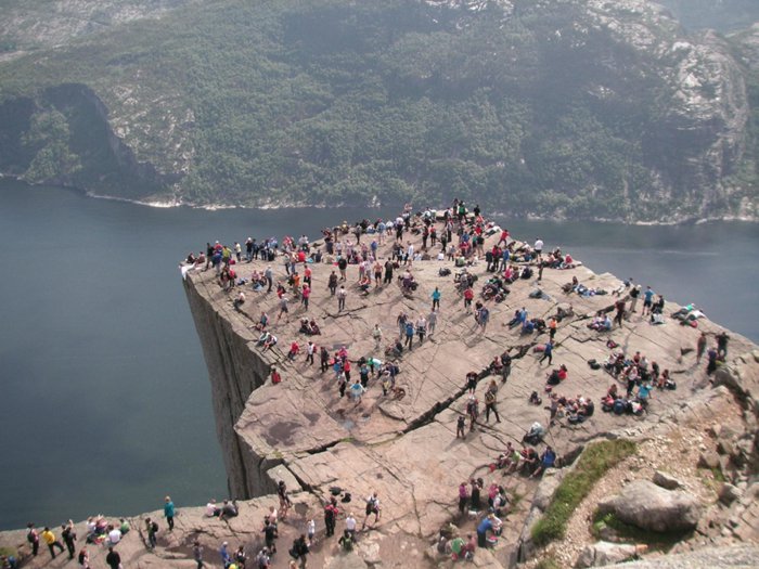 Brixtolen Rock or the rocky platform is an awesome rocky flat with wonderful panoramic views of the surrounding area. The slope rises approximately 604 meters above ground level. To reach the slope, you must walk a path within the bosom of nature, where there is a private car park and from which the journey begins, no less than a duration Walk about two hours to reach, the slope is of great importance as it is visited by many people, especially in the summer, so the place may be a little crowded, on this slope the sixth part of the famous Tom Cruise movie Mission Impossible was filmed.