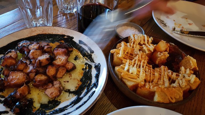 Set in an old country house, Pulpo Negro is a Spanish restaurant whose name means "black octopus". It features an elegant exposed-brick interior and offers an extensive menu that includes tapas, seafood and tortilla dishes such as padron peppers, Catalan tomato bread, gazpacho soup and cod fritters, as well as desserts. Delicious strawberry tartlet and cheesecake.