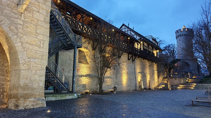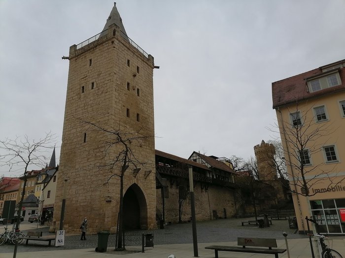 The Bulverturm Tower is located in Jena, and it is part of the old city wall, of which only a few traces remain today. It is only 7 meters long, and its construction dates back to the Middle Ages. Therefore, it is considered one of the important historical monuments in the city.