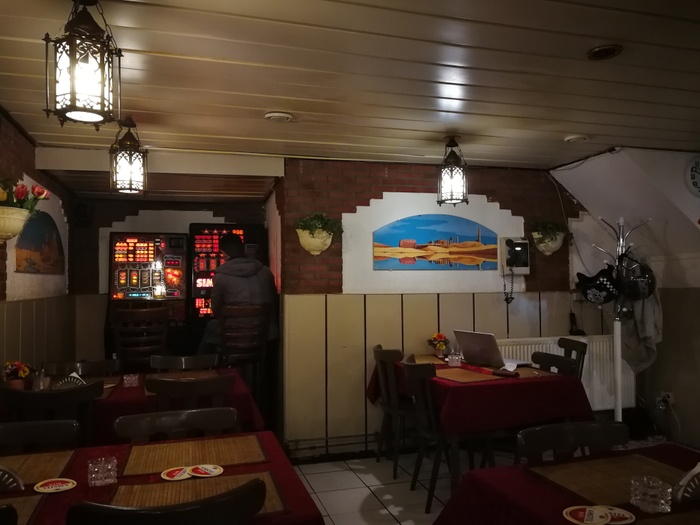 small Egyptian restaurant, distinguished by its traditional oriental decor and beautiful paintings, whether they are of the picturesque Egyptian pyramids or of the ancient pharaohs. Among the dishes it offers, you will find salads: such as cucumber salad, Egyptian salad, tomato salad with mint, and others. Among the sandwiches, you can find: shawarma sandwiches, either with chicken or meat, falafel sandwiches, kebabs, and many more. As for the main dishes, you will find: mixed grill dish, kebabs, pulled chicken and many other items.