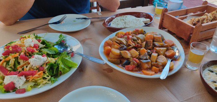 Tourist and local customers of Raccostroto Restaurant choose whether to sit in its indoor halls or in its outdoor garden, which has stone floors decorated with flowers of various shapes and colors. The restaurant offers a wide variety of salads, seasonal local appetizers, side dishes, main meals, desserts, and cold and hot drinks.
