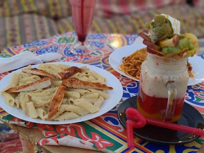 Visit the Ramada Mokattam Village Café to enjoy the most beautiful times with family or friends in the heart of the Mokattam Mountains in Cairo, and dine while listening to the melodies of soft music, and it gives you the option to sit in a hotel restaurant lounge, a Bedouin tent, or in the open garden, as it is a suitable place To celebrate birthdays and special occasions, his favorite dishes are chicken tikka and shish tawook.