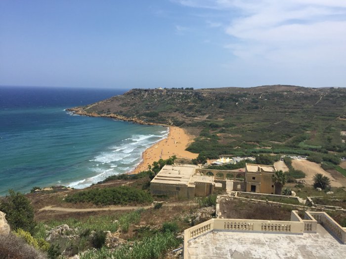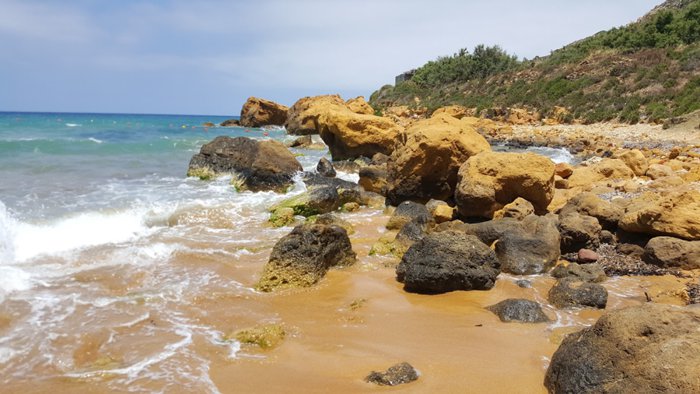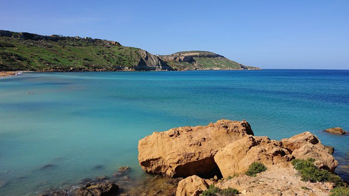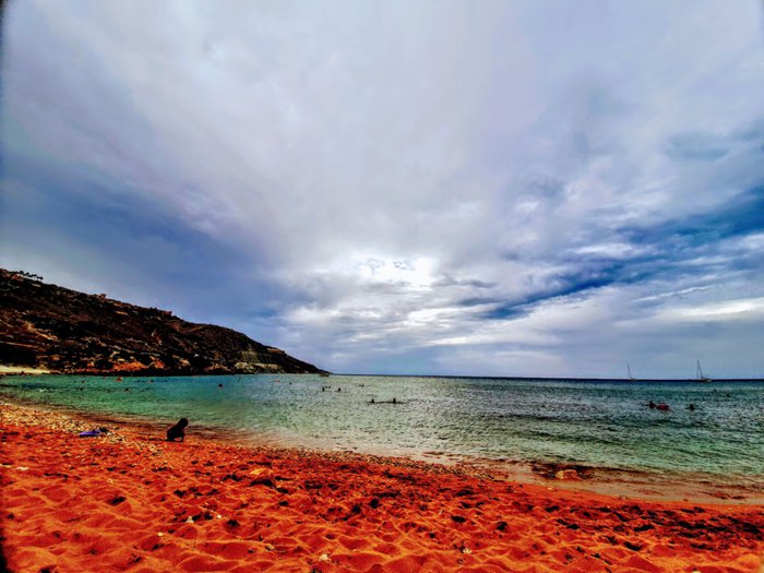 stunning beach with red sand, and it is one of the most famous beaches on the island of Gozo because the water is emerald, and there is a historical cave and the remains of a villa from the Roman era. It is one of the beaches where swimming is allowed because lifeguards are present around the clock. There is also a luxurious restaurant on the beach that serves delicious local dishes. The beach is easily accessible by public transportation as it is centrally located in the city.