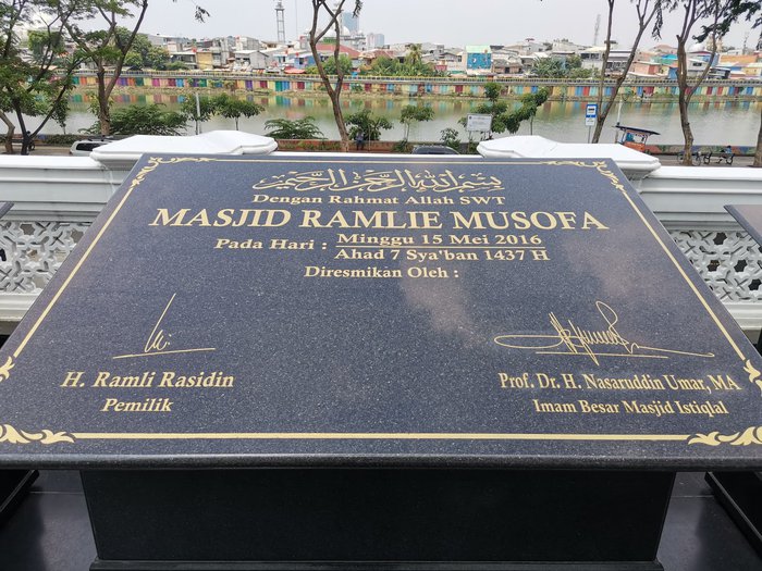 The design of the Ramli Masoufa Mosque, which is dominated by white, is inspired by the stunning Taj Mahal shrine in India with a central dome and beautiful towers, along with some distinctive architectural touches from Arabia, China and Indonesia. It is also equipped with a minbar made of marble imported from Turkey and Italy, and is located on the side The other is from Lake Suntere, north of Jakarta.