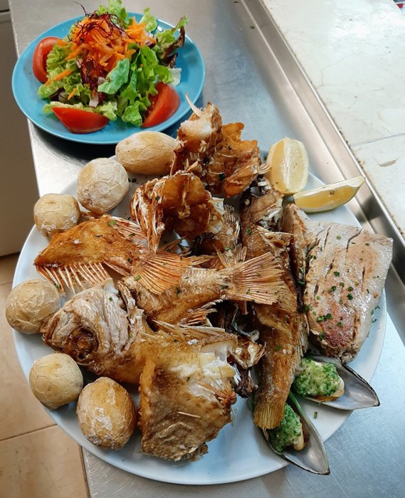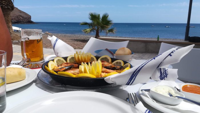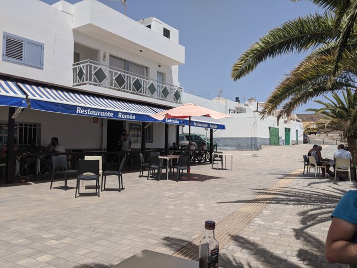 Enjoy eating delicious Spanish food at Ramon Restaurant, right next to the church in La Lajita, which has an outdoor terrace and stunning views of the sea. It serves a number of delicious dishes such as grilled squid, grilled sardines, fried fish, as well as pasta, soup and salad. As for appetizers, there are Canarian dishes Such as papas arugadas (wrinkled potatoes), goat cheese and fried peppers.