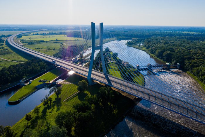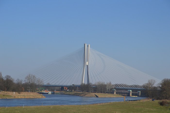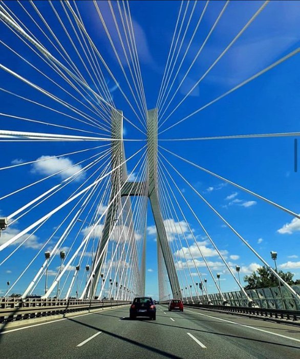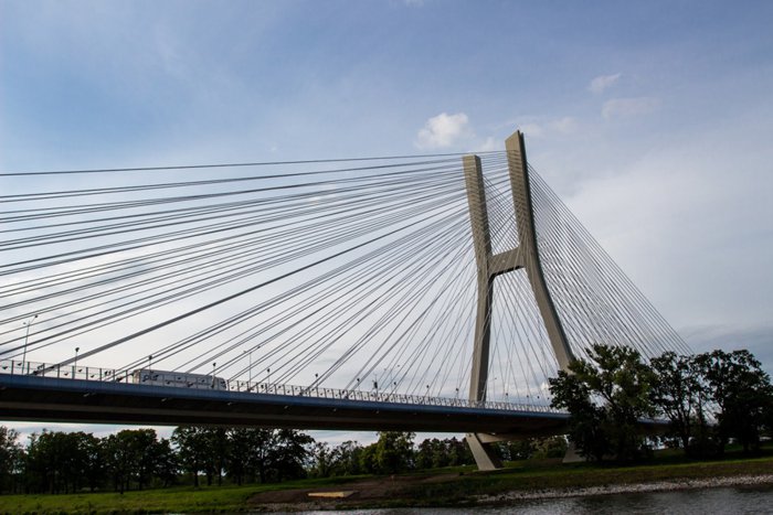 The Rodzinski Bridge passes over the Oder River in the city of Wroclaw, and represents a road linking the north and south of the city. The bridge is about 122 meters high and spans 1.7 km. It is ranked as the longest bridge in the whole of Poland. The construction of this bridge took about five years at a cost of 576 million Polish zlotys, and its construction was completed in 2011. It is a wonderful bridge surrounded by beautiful natural and urban scenery.