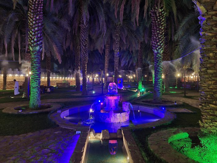 Al Bustan Reef Park covers a spacious area, punctuated by many long paths adorned with tall palm trees. It also provides a group of traditional sessions, comfortable tables and illuminated water fountains, in addition to that it includes a simple restaurant and some recreational facilities and games for children.